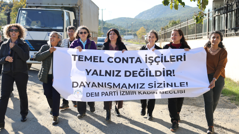 DEM Parti Kadın Meclisi, 25 Kasım çalışmaları kapsamında İzmir'de Deniz Poyraz'ın ailesini ve sendikal hakları için direnen Digel Tekstil ve Temel Conta işçilerini ziyaret etti.