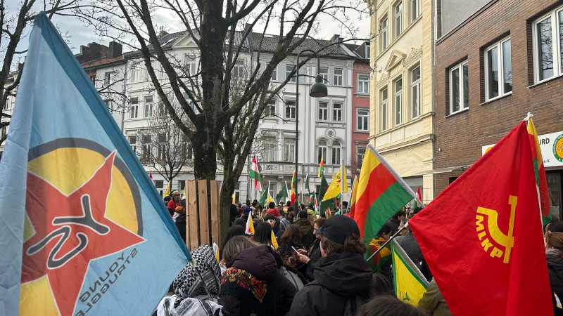 Oberstr Aachen Kürt Halkevi önünde bir araya gelen binlerce insan Elliseburung meydanına yürüyüş gerçekleştirdi. Kürdistanlılar, MLKP, Young Straggle, Alman antifaşist güçler, Die Linke ve TIP destek verdiği eylemde "Biji Kürdistan", "Jin jiyan azadi" sloganları atıldı.