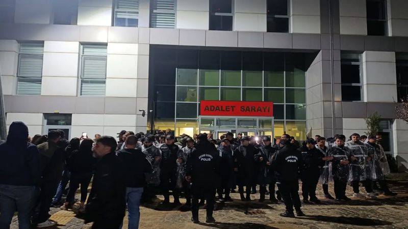 Adliye önünde polis önlemleri altında halkın bekleyişi devam ediyor.