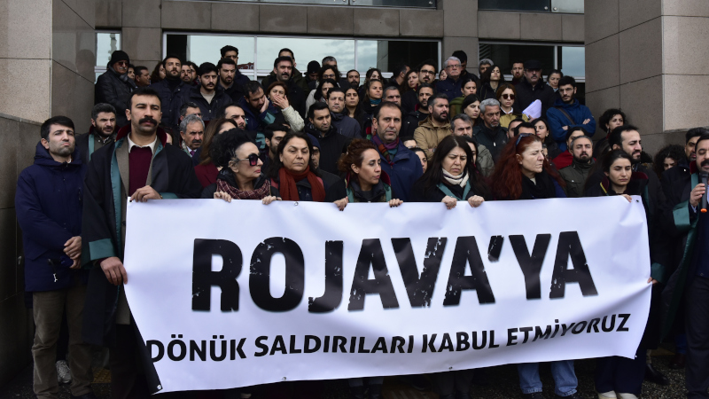 Adalet için Hukukçular, Demokrasi için Hukukçular, İnsan Hakları Derneği (İHD), Özgürlükçü Demokrat Avukatlar, Özgürlük için Hukukçular Derneği (ÖHD), Katılımcı Avukatlar, Toplum ve Hukuk Araştırmaları Vakfı İstanbul Adliyesi önünde açıklama gerçekleştirdi. "Rojava'ya dönük saldırıları kabul etmiyoruz" pankartının açıldığı eylemde "Biji berxwdana Rojava" sloganları atıldı. Basın metnini ÖHD İstanbul Şubesi Eşbaşkanı Eda Önal okudu.