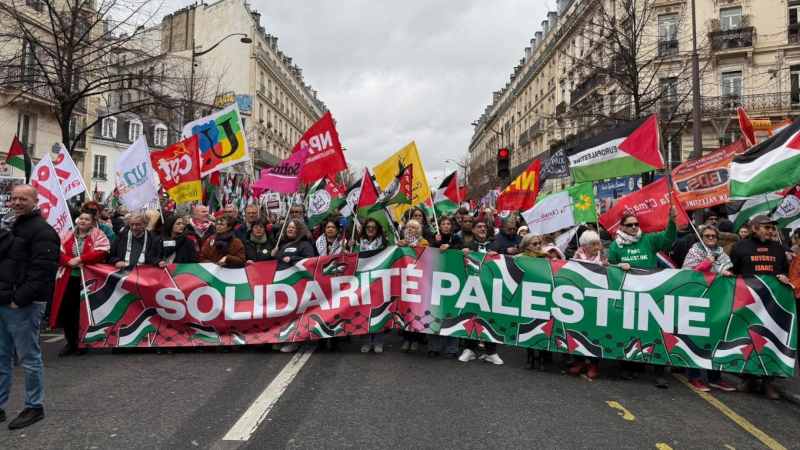 İngiltere ve Fransa'da on binler, siyonist İsrail'in soykırım saldırılarına karşı Filistin'le dayanışma için yürüdü.
