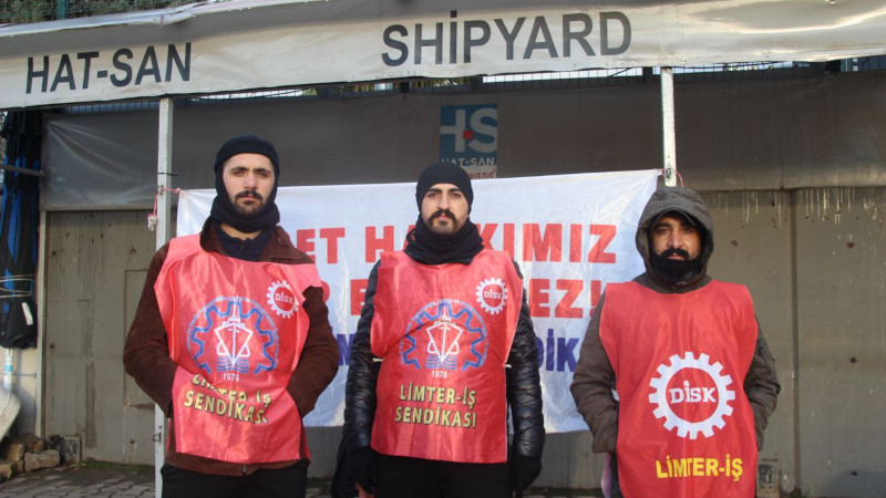 Günlerdir soğuk havaya rağmen hakları için mücadele eden işçilerle direniş alanında görüştük. İşçilerin yağışta, ayazda hakları için direnişi tersane bölgesinde yayıldı. Dolmuşa bindiğimde Hat-San'a gideceğimi söyleyince yanıma yanaşan genç bir kadın, "İş görüşmesi için mi geldin, umarım kabul edilirsin" dedi. Kendisine gazeteci olduğumu, işçilerin direnişte olduğunu söyleyince de, "Bu havada günlerdir direniyorlar. Sedef Tersanesinde de o sendika geçenlerde eylem yapmış, işçiler maaşlarını almıştı. Bunlar da alır umarım. Patronlar işçilere para vermiyor" dedi.