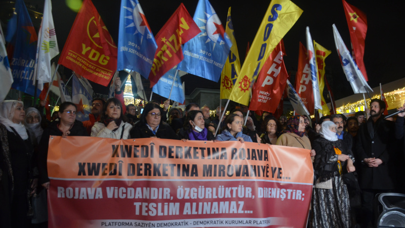 Demokratik Kurumlar Platformu'nun çağrısıyla yüzlerce kişi, cihatçı HTŞ çetelerinin Halep'te Kürtlerin ve Süryanilerin yaşadığı Şêxmeqsûd, Eşrefiyê ve Benî Zeyd mahallelerine dönük katliam saldırılarını Şişhane Meydanında protesto etti. Çok sayıda siyasi parti ve demokratik kitle örgütü temsilcisinin katıldığı basın açıklamasında, "Rojava vicdandır, özgürlüktür, direniştir, teslim alınamaz" pankartı açıldı.