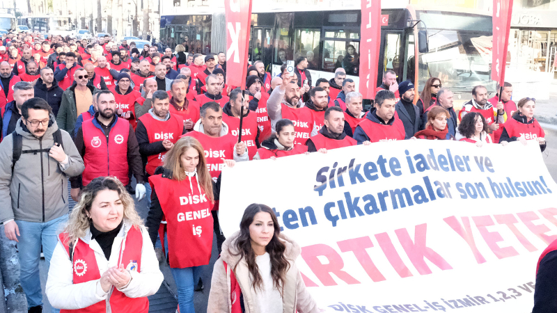 İzmir Büyükşehir Belediyesine (İzBB) bağlı İZENERJİ, İZELMAN, İZTEK, EgeŞehir ve İZFAŞ'ta dört aydır maaşların ödenmemesi ve havuz uygulamasına karşı işçilerin çıplak ayak eylemleri sürerken, işten atılan ve havuzda bekletilen işçiler, örgütlü olduğu Genel-İş İzmir 1,2,3 ve 9 No'lu şubelerin çağrısıyla Konak Pier önünde toplandı. Bir araya gelen işçiler,"İşimizi geri istiyoruz", "Zafer direnen emekçinin olacak", "İş, ekmek yoksa barış da yok", "Havuza hayır" sloganları eşlinde Kültürpark 9 Eylül kapısı önünde bulunan direniş çadırına yürüdü.