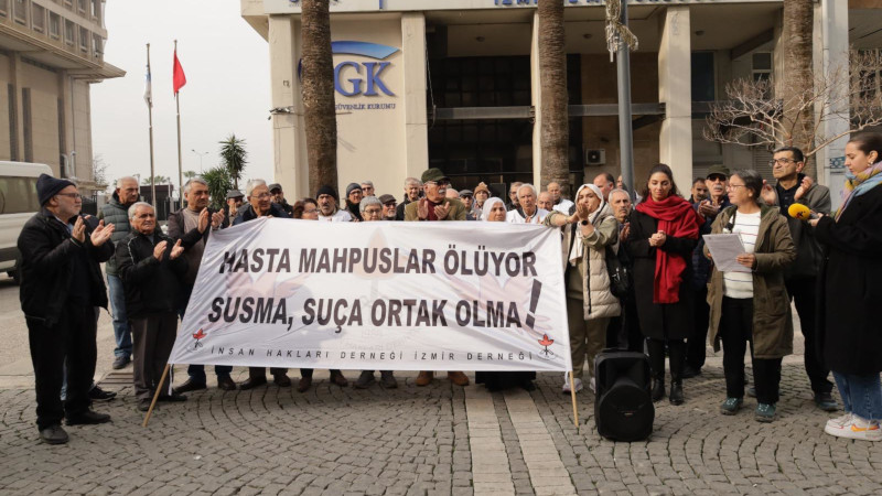 İnsan Hakları Derneği (İHD) İzmir Şubesi ve tutsak yakınları, hasta tutsakların durumuna dikkat çekmek için düzenledikleri eylemlerin 368. haftasında Konak eski Sümerbank önünde yan yana geldi. Eylemde, "Hasta mahpuslar ölüyor, susma, suça ortak olma" pankartı açıldı.