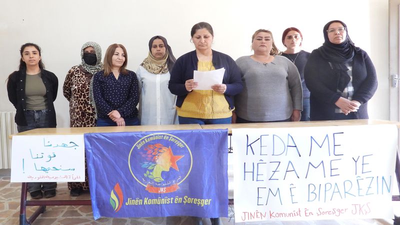 Basın toplantısı düzenleyen JKŞ'liler, "Devrimin savunması ve yaşamın kurulması bizim omuzlarımızdaydı. Görünen ve görünmeyen emeğimizle bu devrimi biz yarattık. Şimdi onu her zamankinden daha güçlü savunacağız" dedi.