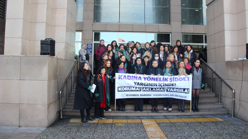 İstanbul Barosu Kadın Hakları Merkezi, Kartal Bölge Adliyesi'nde savcı Çağatay Kılıçarslan'ın, hakim Aslı Kahraman'ı ateşli silahla vurarak katletmeye çalışmasına ilişkin İstanbul Adliyesi'nde basın açıklaması gerçekleştirdi. "Kadına yönelik şiddet yargının içinde. Koruma aklama yargıla" pankartının açıldığı eylem boyunca "Erkek adalet değil gerçek adalet", "Bağır herkes duysun, erkek şiddeti son bulsun" sloganları atıldı. Basın metnini avukat Gülyeter Aktepe okudu.