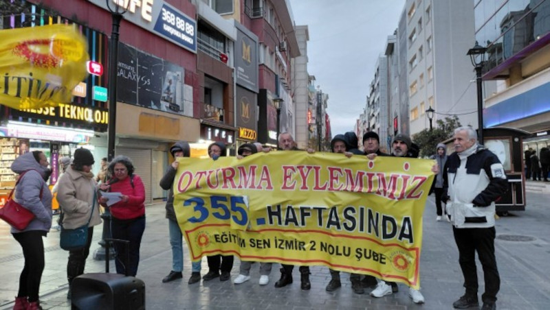 Kamu Emekçileri Sendikaları Konfederasyonu (KESK) İzmir Şubesi, KHK'lerle işten çıkarılan kamu emekçileri için her hafta düzenlediği eylemin 355. haftasında bir kez daha Karşıyaka çarşı girişinde yan yana geldi.