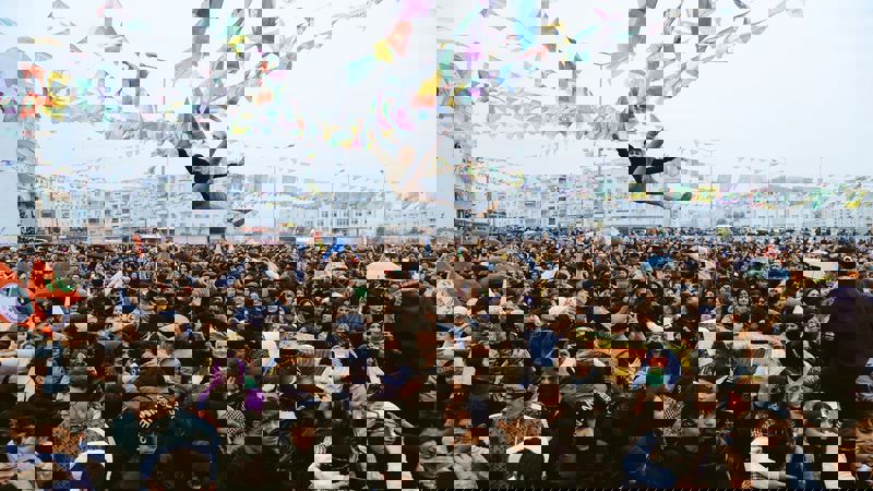 Kentte etkili olan yağmura rağmen alanda Newroz kutlamasını sürdüren halk, okudukları marşlar eşliğinde Abdullah Öcalan ile PKK'nin kurucu önderleri Mazlum Doğan, Haki Karter, Sakine Cansız ve daha birçok devrimciye ait posterler açtı. Kitle, sık sık sloganlarıyla "Öcalan'a özgürlük" istedi.