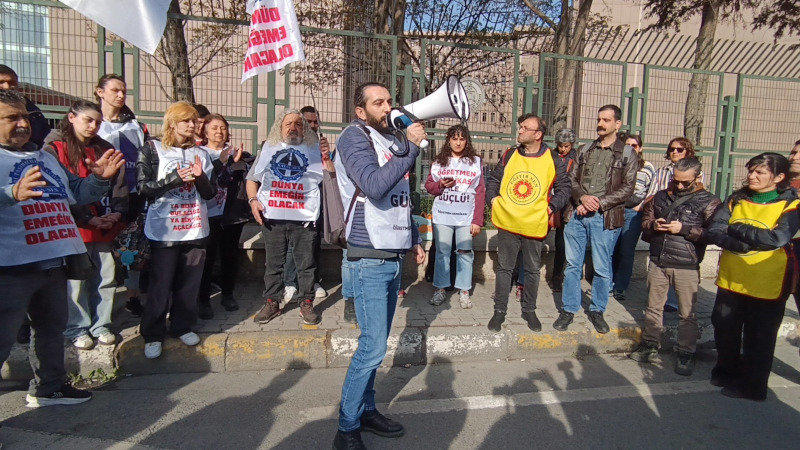 Bakırköy Adliyesi önünde toplanan eğitim emekçileri, adliyeye sevk edilen dört öğretmen için destek açıklaması yaptı. Çok sayıda sendika, parti ve emek örgütü açıklamaya katılırken, “Gözaltılar, tutuklamalar, baskılar bizi yıldıramaz” sloganları atıldı.