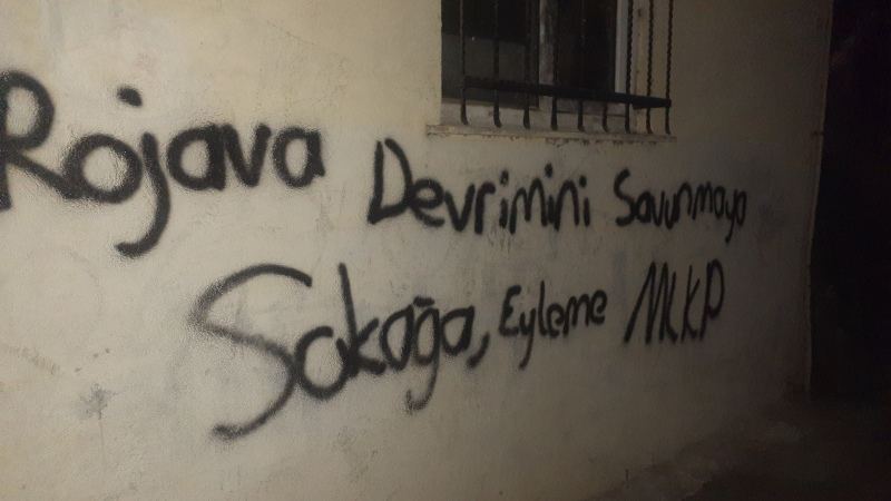 Marksist Leninist Komünist Parti (MLKP) Oğuz Saruhan milisleri, Rojava devrimine yönelik işgal saldırılarına karşı İstanbul'un emekçi semtlerinde yazılama ve ajitasyon çalışması yaptı.