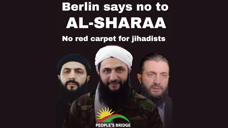 People's Bridge (Halkların Köprüsü), Almanya'daki çok sayıda devrimci kurum, gazeteciler ve parlamenterlerin imzaladığı açıklama yaptı. HTŞ çetesi lideri Ahmed El-Şara'nın (Golani), Alman Federal hükümeti 19 Ocak'ta Berlin'de kabul edilmesine tepki gösterilen açıklamada, bunun kabul edilemez olduğu vurgulandı.