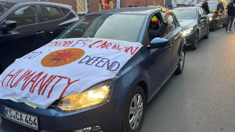 Hannover'den Kassel'e doğru hareket eden People's Caravan, Avrupa'nın farklı kentlerinden katılımların ardından Rojava'ya ulaşmayı amaçlıyor.