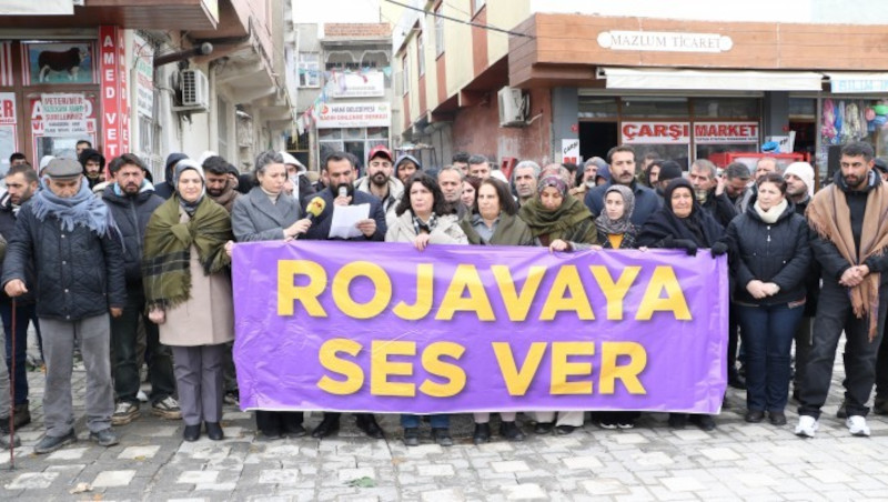 Demokratik Kurumlar Platformu, Rojava'ya dönük saldırılara karşı Hani ilçesinde açıklama yaptı. Eylemde "Rojava'ya ses ver" pankartı taşındı.