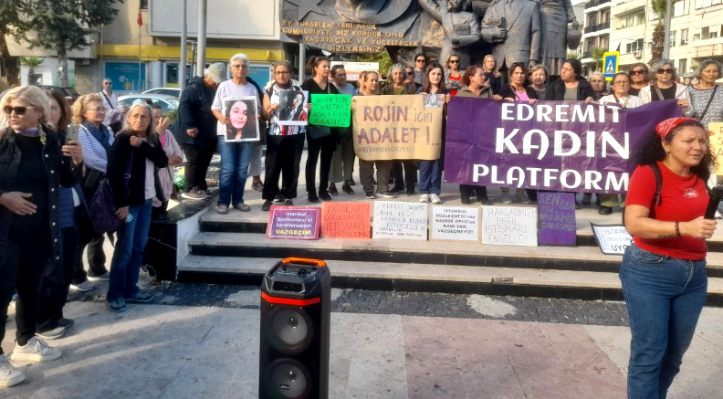 Balıkesir'in Edremit ilçesinde de Edremit Kadın Platformu'nun çağrısıyla Rojin'e adalet istemek için kadınlar buluştu.
