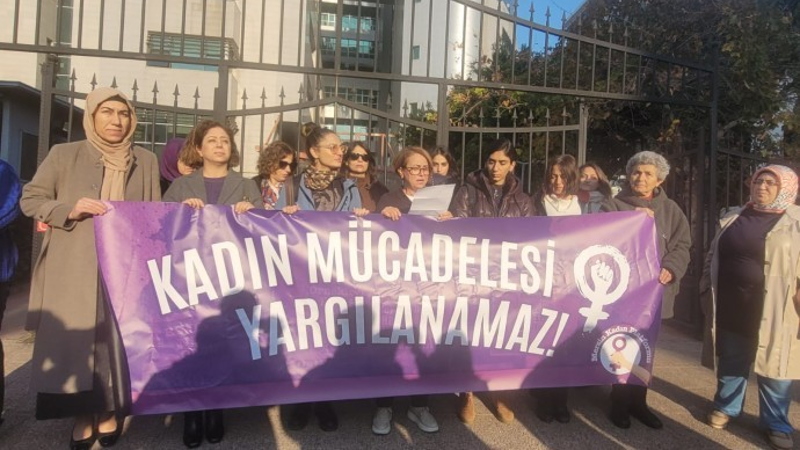 Mersin'de gerçekleşecek duruşma öncesi Mersin Kadın Platformu adliye önünde basın açıklaması düzenleyerek, "Kadın cinayetlerini sormak suç değildir" vurgusu yaptı.