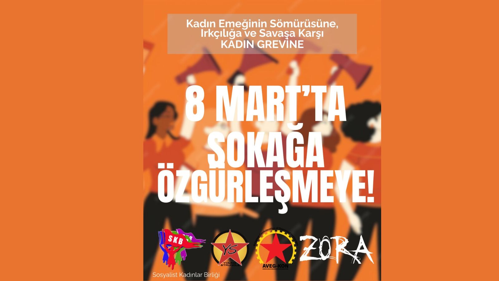 8 Mart öncesinde açıklama yapan Sosyalist Kadınlar Birliği (SKB), tüm kadınları, erkek egemenliğine, şiddete, emperyalist savaşlara, faşizme ve yoksulluğa karşı alanlara ve kadın grevine çağırdı.