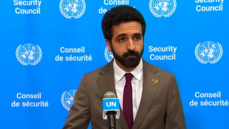 Suriye'nin Birleşmiş Milletler (BM) Daimi Temsilcisi İbrahim Olabi, New York'ta düzenlediği basın toplantısında gazetecilerin sorularını yanıtladı.