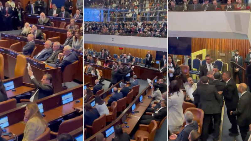 "Filistin'i tanıyın" pankartı açan vekiller Ofer Cassif ile Ayman Odeh'e siyonist vekiller sözlü saldırıda bulundu. Odeh ve Cassif, diğer vekillerin "Terörist" bağrışları eşliğinde Meclis güvenliği tarafından salondan çıkarılırken Trump Odeh ve Cassif'e yönelik saldırıyı "Çok verimli" olarak niteledi.