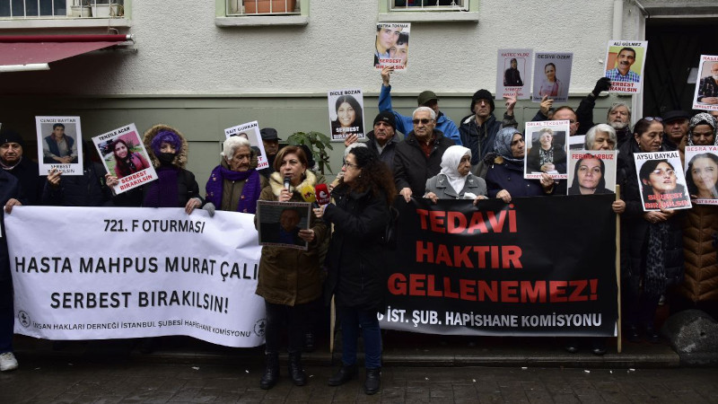 İnsan Hakları Derneği (İHD) İstanbul Şubesi Hapishane Komisyonu, 721. F oturumunu dernek binası önünde gerçekleştirildi. "Tedavi haktır engellenemez" ve "Hasta mahpus Murat Çalık serbest bırakılsın" pankartları açılan eylemde, hasta tutsakların fotoğrafları taşındı. Eylem boyunca "Hasta tutsaklar serbest bırakılsın" ve "Tecrit öldürür dayanışma yaşatır" sloganları atıldı.