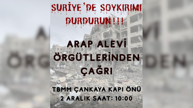 Alevi örgütleri, Suriye'de HTŞ'ye bağlı çetelerin Alevilere dönük yoğunlaşan saldırılarına karşı 2 Aralık saat 10.00'da Meclis Çankaya kapısına eylem çağrısı yaptı.