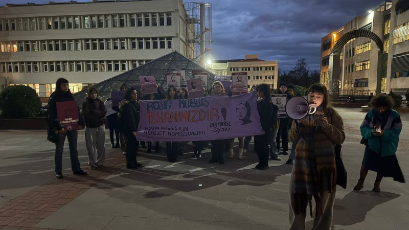 Rojin Kabaiş için Adalet Komisyonları ve Feminist Boğaziçi'nin çağrısıyla Boğaziçi Üniversitesi öğrencisi kadınlar, Kuzey Kampüs'te Rojin Kabaiş için eyleme geçti.