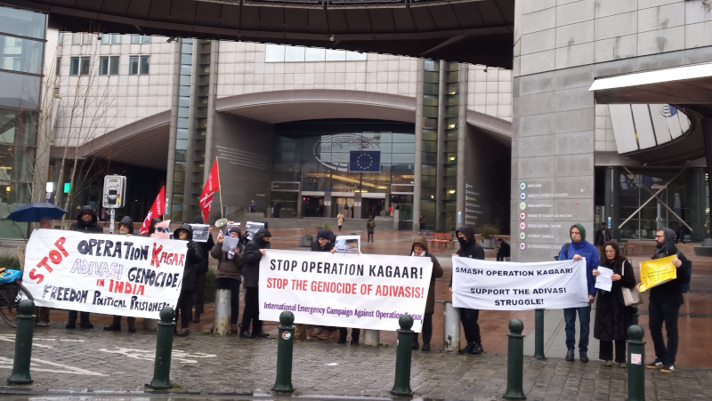 Hindistan'da faşist Modi iktidarının Hindistan Komünist Partisi'ne (Maoist) karşı iki yıldır "Kagaar operasyonu" adıyla yürüttüğü saldırılar Brüksel'de AB Parlamentosu önünde protesto edildi.