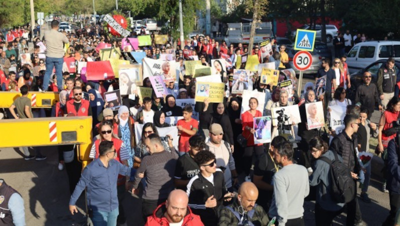Rojin Kabaiş'in kardeşi Elif Kabaiş, "Tam bir yıl önce ablamı toprağa verdik. İçimizdeki yangın o günden bugüne büyüdü. Van Valisi ile rektör ambulansa girip 'Senin kızın intihar etti' dediler. Rektör otopsi odasına girdi. Senin orada ne işin var, ne örtmeye çalıştın, DNA raporu neden 9 ay saklandı, ATK bunu neden yaptı? Otopsi odasına giren, 'intihar' diyen, kameraları kapatan kim varsa yargılansın. Onun hayallerini biliyorum. Onun hayallerini yok eden kim varsa hesap versin. Bir yıldır bekliyoruz. Adalet bulunsun. Yeter artık" diye konuştu.