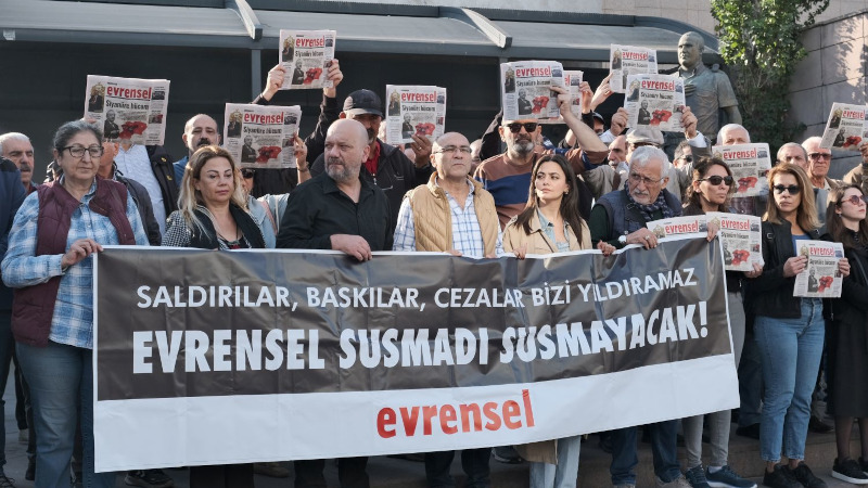 Cezasızlığın yeni saldırıların önünü açacağını söyleyen TGS İzmir Şube Başkanı Nil Kahramanoğlu, "Bu ülkede gazeteciler tutuklanıyor, öldürülüyor. Kanallara kayyum atanıyor. Böyle bir süreçte her türlü mücadeleyi veren gazeteler ve gazeteciler var. Evrensel onlardan biri ve 30 yıldır her türlü tehdide baskıya rağmen geri adım atmadı. Bu saldırı sadece Evrensel'e değil tüm basına yapılmış bir saldırı" diye konuştu.