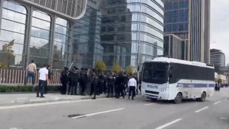 Üyelerinin gasp edilmek istenen hakları için Halkbank şantiyesi önünde eyleme geçen İnşaat-İş ve Dev Yapı-İş ile inşaat işçileri gözaltına alındı.