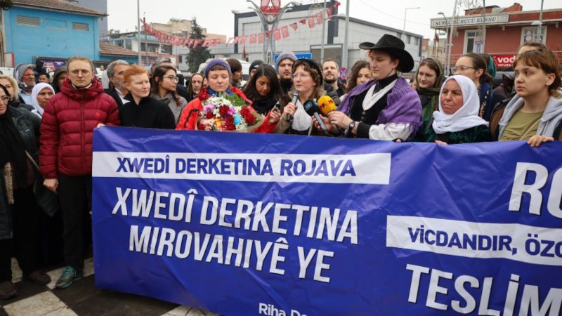 Açıklama, "Jin, Jiyan, azadî, bijî berxwedana Kobanê, bijî berxwedana Rojava demeye devam ediyoruz" sözleriyle son buldu.