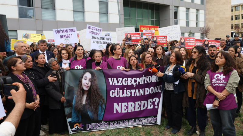 Dersim Kadın Platformu, Gülistan Doku soruşturması kapsamında yaşanan gelişmelere dair açıklama yaptı. Gülistan Doku'nun fotoğrafları ile "Erkek adalet değil, gerçek adalet", "Gülistan Doku, "Rojin Kabaiş ve kaybedilen kadınlar için adalet", "Bir kişi değil, bir sistem sorgulanmalıdır" dövizlerinin açıldığı açıklamada, "Yaşasın kadın dayanışması", "Gülistan Doku nerede?", "Gülistan için Adalet", "Kadın cinayetleri politiktir" sloganları atıldı.