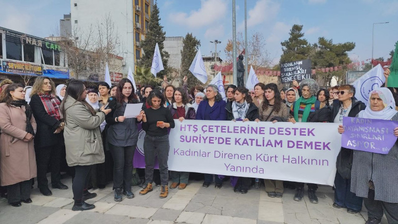 Rojava'da kadınların eşit olduğu bir yaşamın hedef alındığı vurgulanan açıklamada şu ifadeler kullanıldı: "Gerçek, eşit ve onurlu bir barış talep etmek suç değildir; aksine, savaşa razı olmamak hepimizin sorumluluğudur. Uluslararası toplumu, BM'yi, kadın örgütlerini ve insan hakları savunucularını göreve çağırıyoruz. Rojava'da kadınlara yönelik şiddet acilen izlenmeli, belgelenmeli ve durdurulmalıdır. Siviller için insani yardım ve güvenli yaşam koşulları sağlanmalı. Savaşı derinleştiren tüm aktörler teşhir edilmeli, barış için sorumluluk almaya zorlanmalıdır. Biz kadınlar, barışı dayanışmamızla, ortak mücadelemizle sınırları aşarak kuranlarız. Rojava'da barış, bu coğrafyada barışın olmazsa olmazıdır. Bu topraklarda, hepimiz için, kadınların eşit yaşadığı bir gelecek ancak böyle mümkündür."
