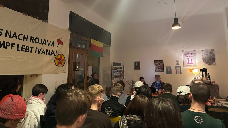 Almanya'nın Leipzig kentinde Marksist Teori dergisi yazarlarından İbrahim Çiçek'in katılımıyla panel yapıldı. Kürt ulusal demokratik hareketi ile Türk devleti arasındaki görüşmelerin ele alındığı panele yaklaşık 50 genç katıldı.