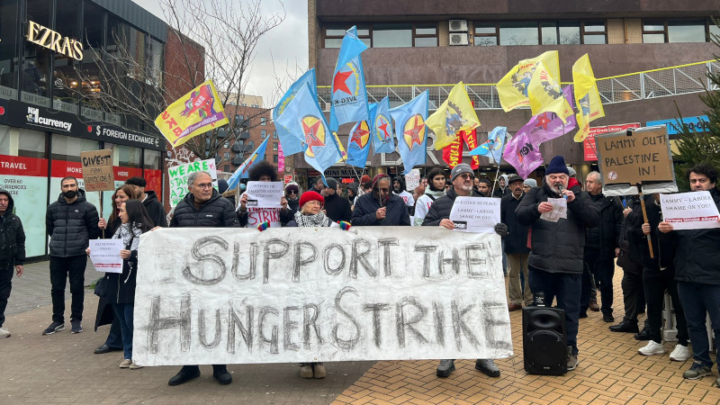 İngiltere'de Filistin dostu tutsakların açlık grevi sürerken, açlık grevleriyle dayanışma eylemleri giderek büyüyor. İngiltere'nin başkenti Londra'da sosyalist gençlik örgütü Young Struggle'ın öncülüğünde gerçekleştirilen, SKB, TSP ve GİK-Der üyelerinin katıldığı 24 saatlik dayanışma açlık grevi Woodgreen Kütüphanesinin önünde basın açıklamasıyla başlatıldı. Britanya Demokratik Güç Birliği (DGB) ve Haringey Socialist Alliance'ın çağrıcısı olduğu açıklamaya çok sayıda kişi katıldı.