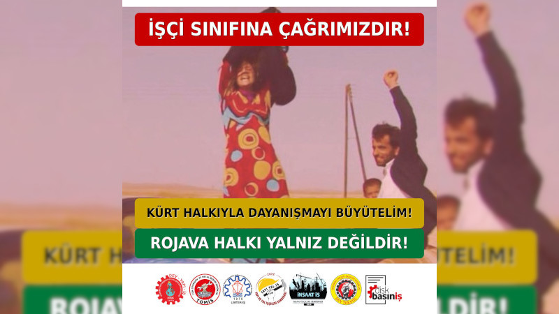 Rojava'da yapılmak istenen her şeyin başka biçimlerde emeğe dayatıldığına dikkat çekilen açıklamada şu ifadelere yer verildi: "Grev kırıcılığı, sendikal örgütlenme düşmanlığı, en temel hak olan ücretlerin bile gasbı giderek sıradanlaşıyor. Bu saldırgan politikalara verilecek her destek, işçi ve emekçileri Ortadoğu'da dökülen kanın suç ortağı haline getirmekle kalmayacak, aynı zamanda bu savaşların ekonomik ve toplumsal faturasının yine bizlere kesilmesine yol açacaktır. Rojava'da yapılmak istenenin emek cephesindeki karşılığı budur. Kürt, Alevi, Dürzi halkının direnişine, mücadelesine omuz vermek bu nedenle işçi sınıfının tarihsel sorumluluğuyla öne çıkmasından geçmektedir. İşçi sınıfının enternasyonalist mücadelesi de bunu gerektirir.