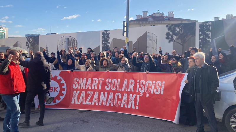 Kocaeli'de faaliyet gösteren Smart Solar fabrikasında Birleşik Metal-İş üyesi işçilerin sefalet ücretine karşı başlattığı grev 68. gününde devam ediyor. Smart Solar işçileri, patronun grev kırıcılığına karşı aynı anda Kocaeli Gebze'deki fabrika önü, İstanbul Beykoz'daki şirket genel merkezi, Kayseri Organize Sanayi Bölgesi'ndeki Vespa Enerji ve İzmir Aliağa'daki Smart Solar fabrikası önünde eyleme geçti. Eylemlerde, "Smart Solar işçileri kazanacak" pankartları açıldı.