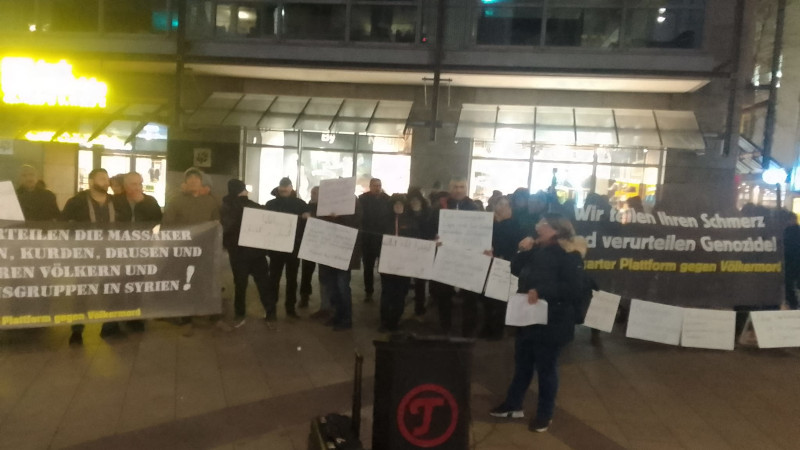 Almanya'nın Stuttgart kentinde, içinde AVEG-KON'a bağlı AGİF'in de yer aldığı Soykırımlara karşı Mücadele Platformu, Suriye'de cihat Heyet Tahrir Şam (HTŞ) çetelerinin Alevilere dönük saldırılarını protesto etti. Eylemde, "Suriye'de Alevilere ve Dürzilere dönük soykırımı durduralım" pankartı açıldı.