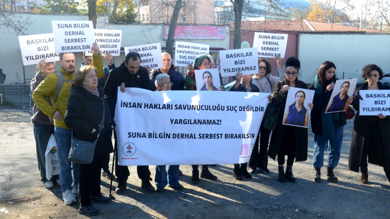 İnsan Hakları Derneği (İHD) İstanbul Şubesi ile Türkiye İnsan Hakları Vakfı (TİHV) İstanbul Temsilciliği, 2 Kasımdan bu yana Bakırköy Kadın Kapalı Hapishanesinde tutulan insan hakları savunucusu Suna Bilgin için hapishane önünde basın açıklaması yaptı.