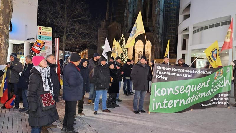 Almanya'nın Ulm kentinte Enternasyonal Birlikin çağrısı ile "Venezuela'dan elinizi çekin" eyleminde, ABD'nin emperyalist saldırılarına tepki gösterildi, enternasyonal mücadeleyi büyütmenin önemine dikkat çekildi.