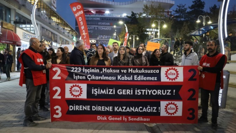 Van'da kayyumun işten çıkardığı 223 belediye işçisinin direnişi, 100. gününde devam etti. DİSK Genel-İş'te örgütlü işçiler, Sanat Sokağı'nda yan yana geldi. Demokratik Bölgeler Partisi (DBP), Halkların Demokrasi Partisi (DEM Parti) milletvekilleri Mahmut Dindar ve Zülküf Uçar ile çok sayıda kişinin katıldığı eylemde, "223 işçinin haksız ve hukuksuzca işten çıkarılması kabul edilemez. İşimizi geri istiyoruz! Direne direne kazanacağız" pankartı açıldı.