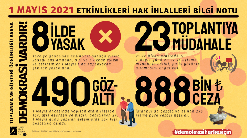 TİHV'nin 1 Mayıs Raporu: 490 gözaltı, 888 bin lira para cezası