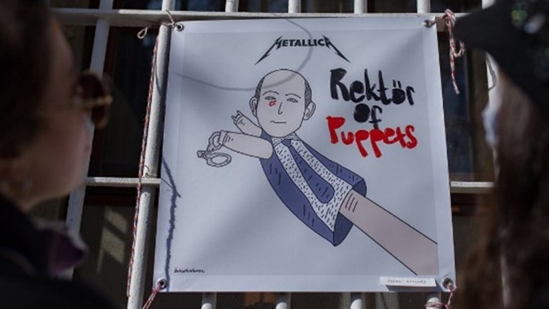 Boğaziçi Üniversitesi'nde Rektörlük binasının önü, şeritlerle kapatıldı