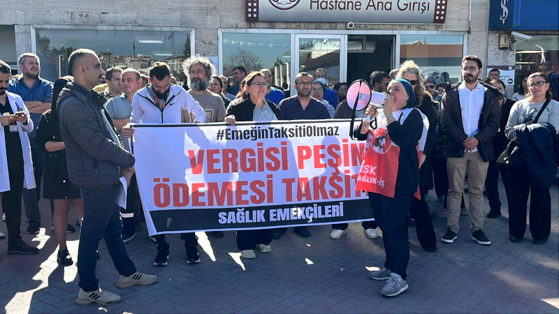 İbni Sina Hastanesi emekçilerinden ücret alacaklarının eksik yatmasına karşı eylem