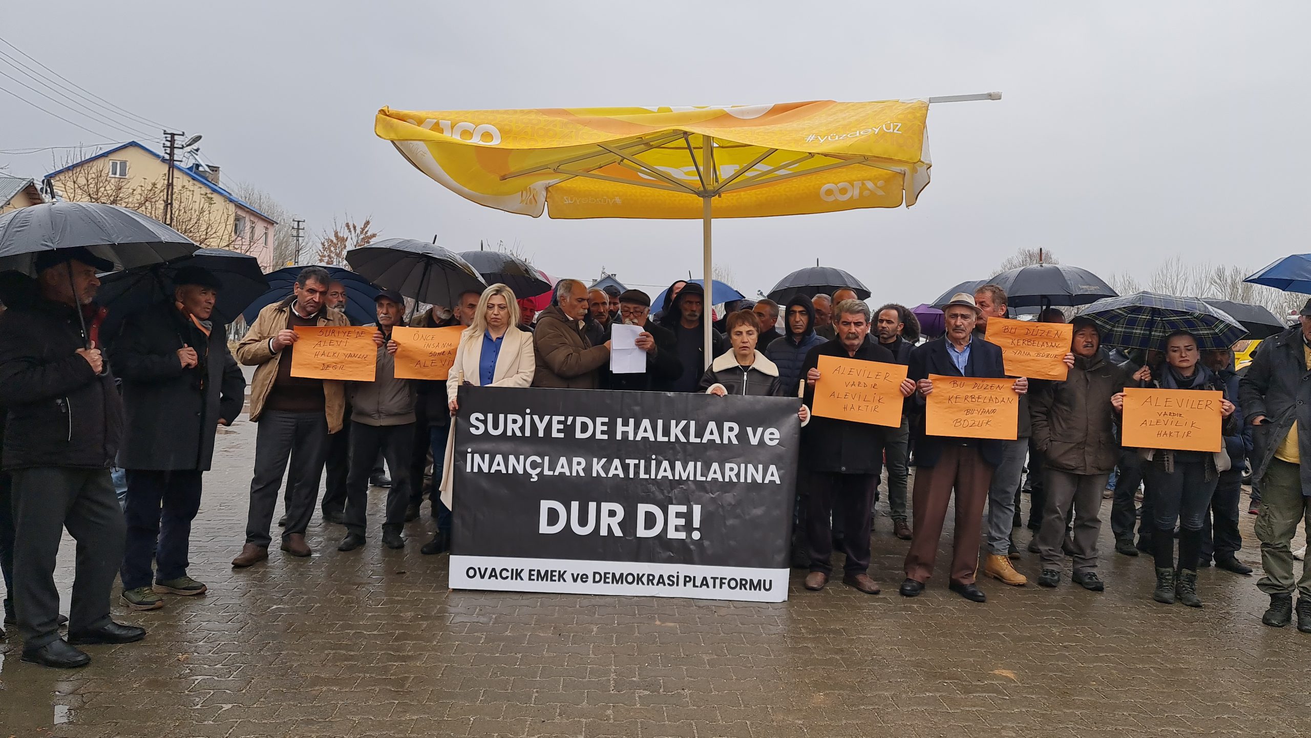 Dersim'in Ovacık ilçesinde Emek ve Demokrasi Platformu tarafından gerçekleştirilen eylemde, "Suriye'de Aleviler, dünyanın gözü önünde sistematik bir soykırıma uğratılıyor" denildi. "Suriye'de halklar ve inançlar katliamlarına dur de" pankartı, "Bu düzen Kerbela'dan bu yana bozuk", "Aleviler vardır, Alevilik haktır", "Suriye'deki Alevi halkı yalnız değildir" dövizleri taşındı.