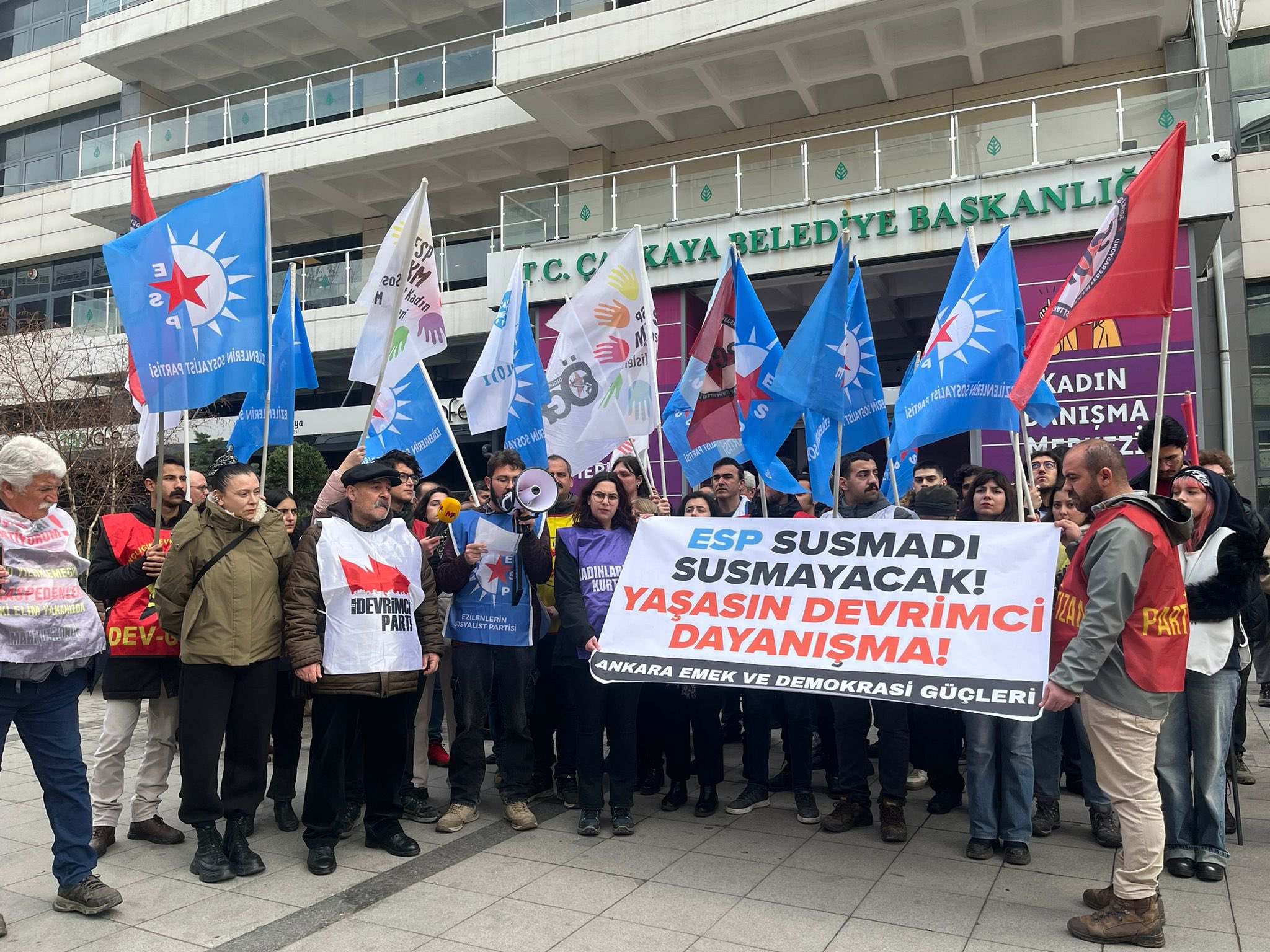 ESP'ye yönelik siyasi kırım saldırısında 77 kişinin tutuklanmasını protesto eden Ankara Emek ve Demokrasi Güçleri, ESP'nin yanında olduklarını belirtti.
