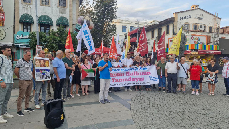 Siyonist İsrail'in Küresel Sumud Filosuna saldırısına tepki gösteren Antalya Emek ve Demokrasi Güçleri, Filistin halkının yanında, siyonist İsrail barbarlığının karşısında olduklarını belirtti.