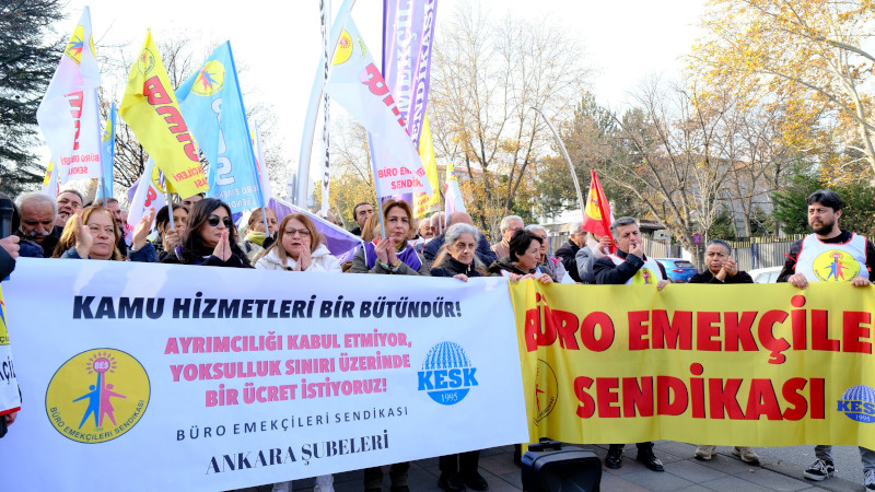 Kamu Emekçileri Sendikaları Konfederasyonu'na (KESK) bağlı Büro Emekçileri Sendikası (BES), 8 Aralık'ta Meclis Genel Kurulu'nda görüşülmeye başlanacak olan 2026 Yılı Merkezi Yönetim Bütçe Kanun Teklifi'ne dair Meclis Dikmen Kapısı önünde eylem yaptı.