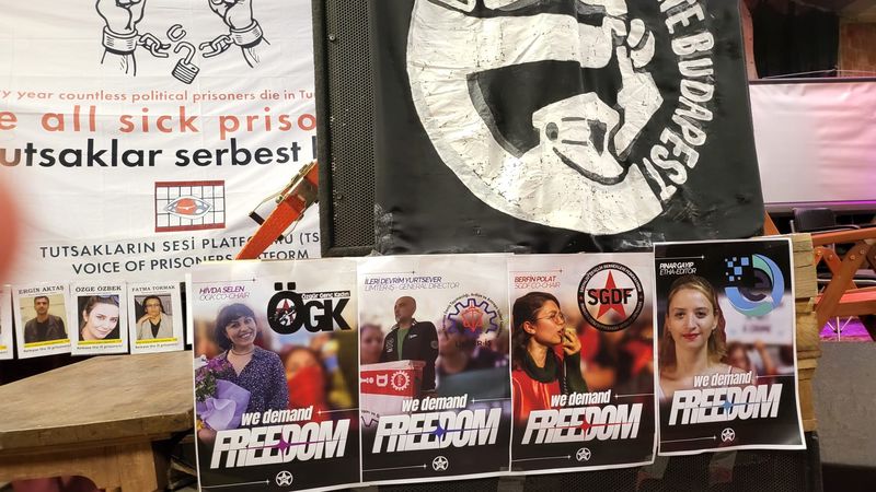 Türkiye'deki hapishanelerde politik tutsakların yoğun baskılara maruz kaldığı, 24 saat kameralarla izlendiği, hasta tutsakların tedavi edilmeyerek ölüme terk edildiği, çeşitli gerekçelerle tahliyelerin engellendiği belirtildi, tüm bunlara karşı tutsakların açlık grevleriyle direndiği vurgulandı.