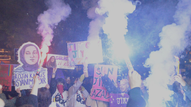 İzmir Foça'da Barış Kadınları İnisiyatifi, Foça Kent Konseyi Kadın Meclisi, Foça Belediyesi ve Tüm Emeklilerin Sendikası Foça Şubesi, "Savaşa, Yoksulluğa Şiddete karşıyız" vurgusuyla iki gün sürecek etkinlikleri başlattı. İlk eylem için Bağarası Atatürk Parkında toplanan kadınlar, "Korkmuyoruz susmuyoruz itaat etmiyoruz", "Katilleri aklama" pankartının arkasında, "Kadın yaşam özgürlük", "Şiddete hayır" ve "Jin jiyan azadi" sloganları ve dövizlerle Bağarası Meydanına yürüdüler.